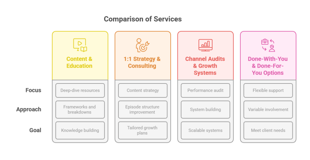 It’s part education hub, part client consultancy built for creators who want to do more than just “post and hope.” Whether you’re a podcaster, educator, or long-form storyteller, our mission is simple: to help you grow with purpose.